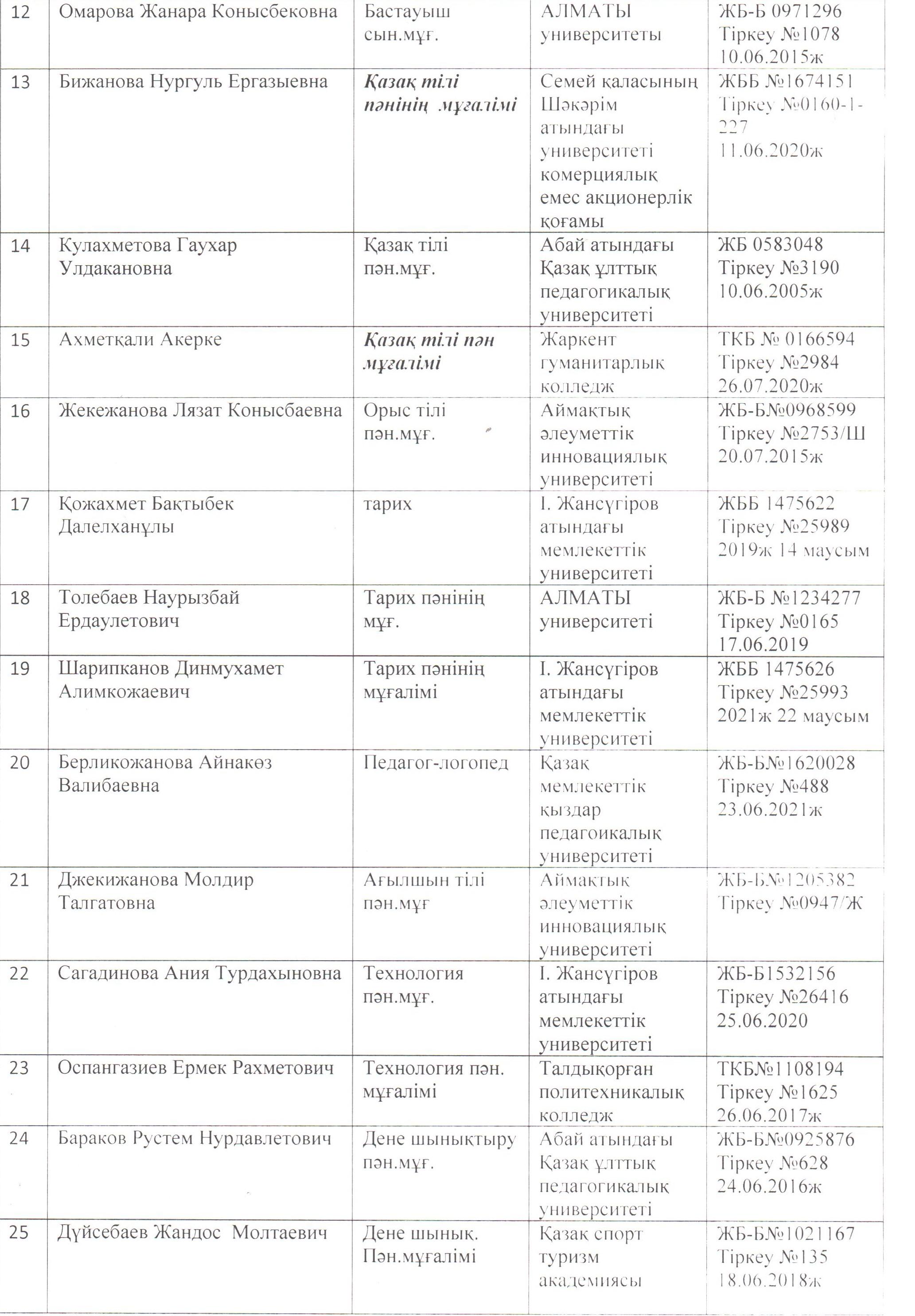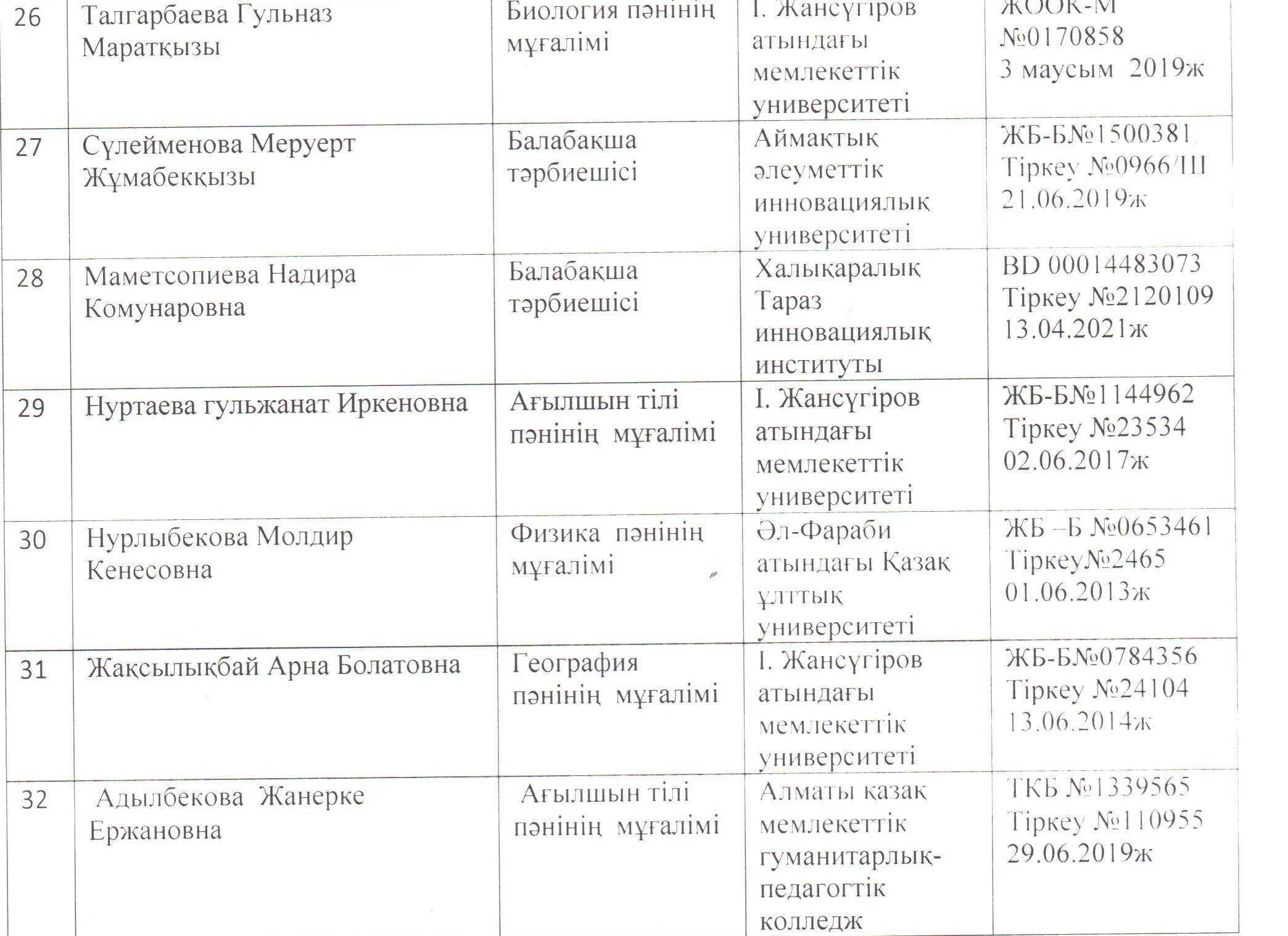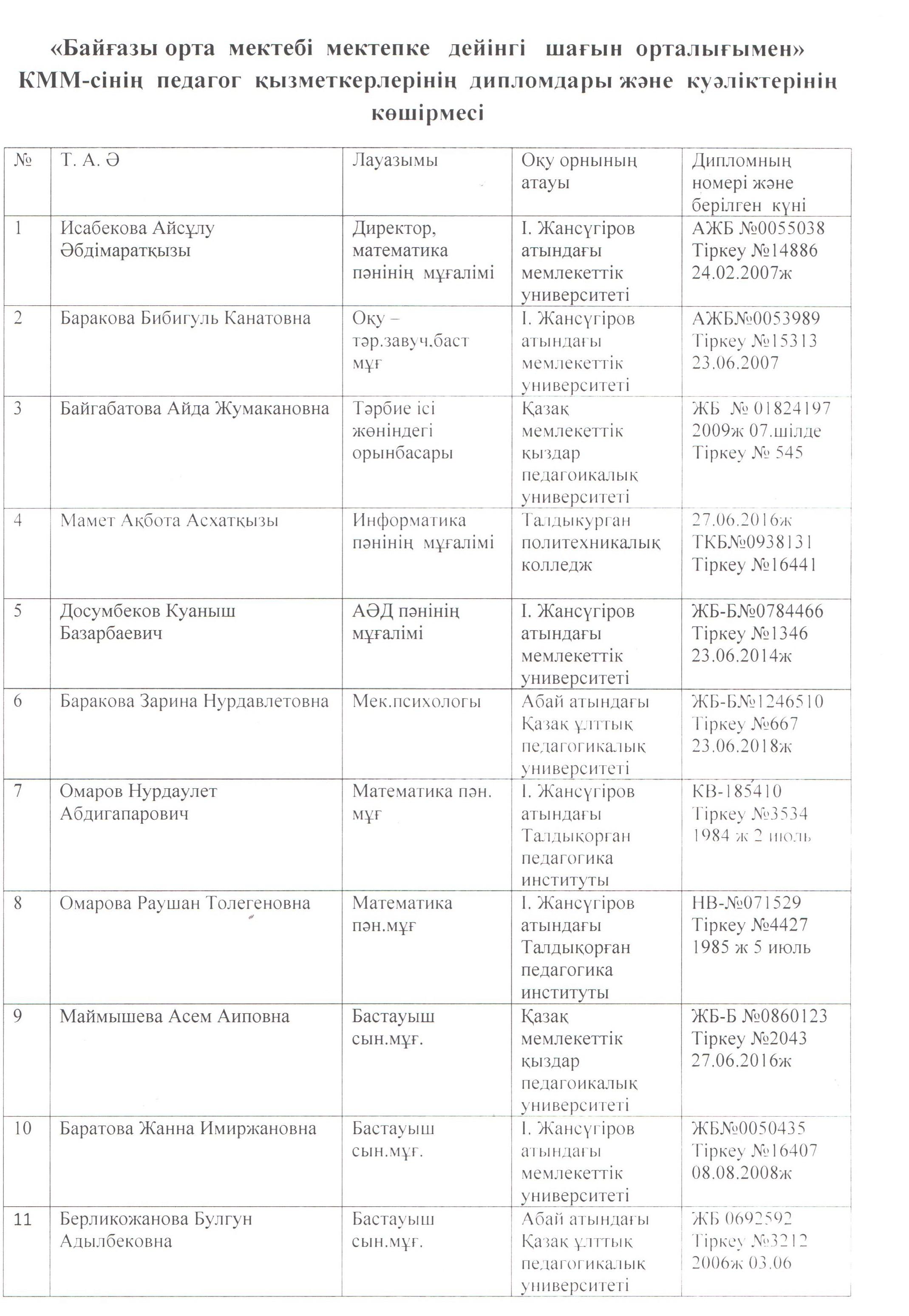 19 апрель 2022 0 1 2 3 4 5 Байғазы орта мектебі мектепке дейінгі шағын орталығының мұғалімдер тізімі [center]