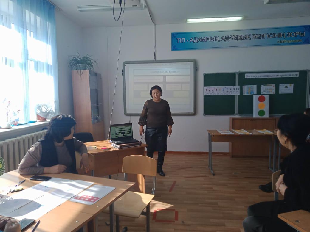 "Бағалау критерийлері" мектепшілік семинар өткізген Г. Кулахметова
