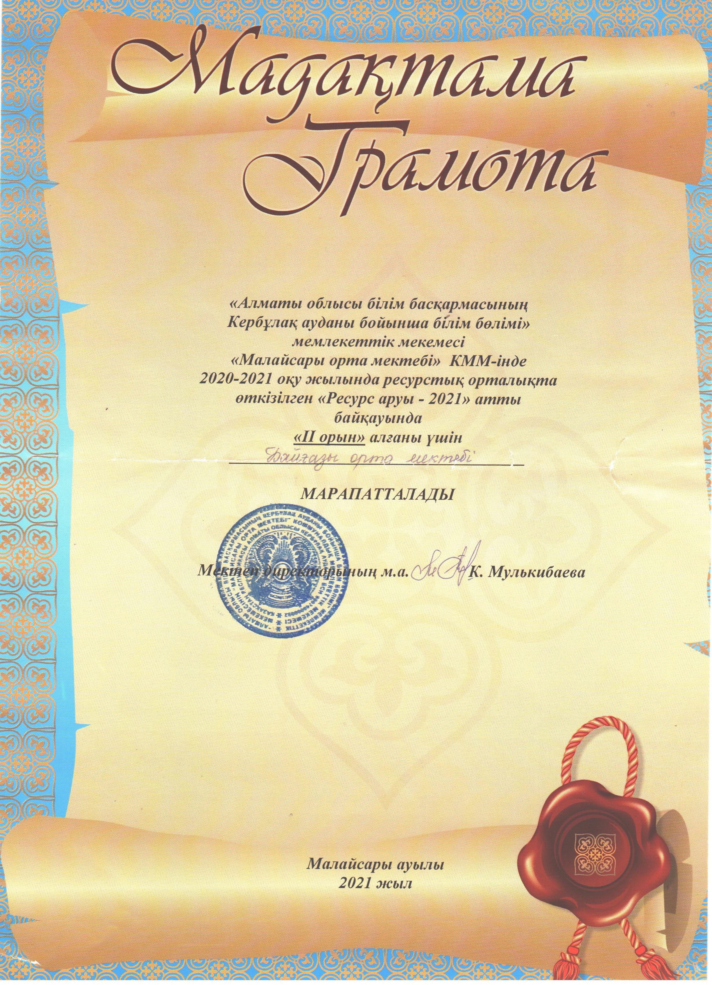 Ресурстық орталығында Ресурс-аруы-2021 2 орын » Жетісу облысы Кербұлақ ауданы Байғазы орта мектебі