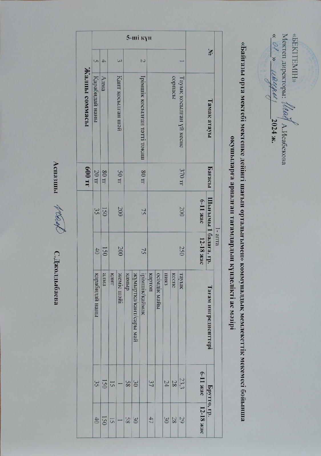 15 сентябрь 2023 Тамақтану