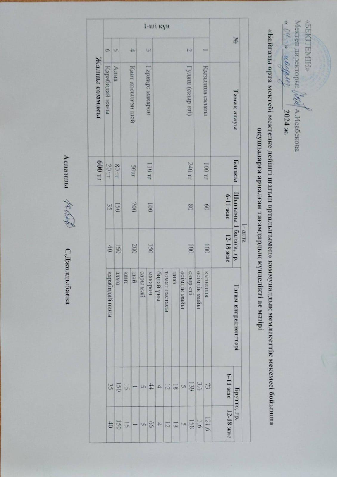 01 март 2024 Тамақтану