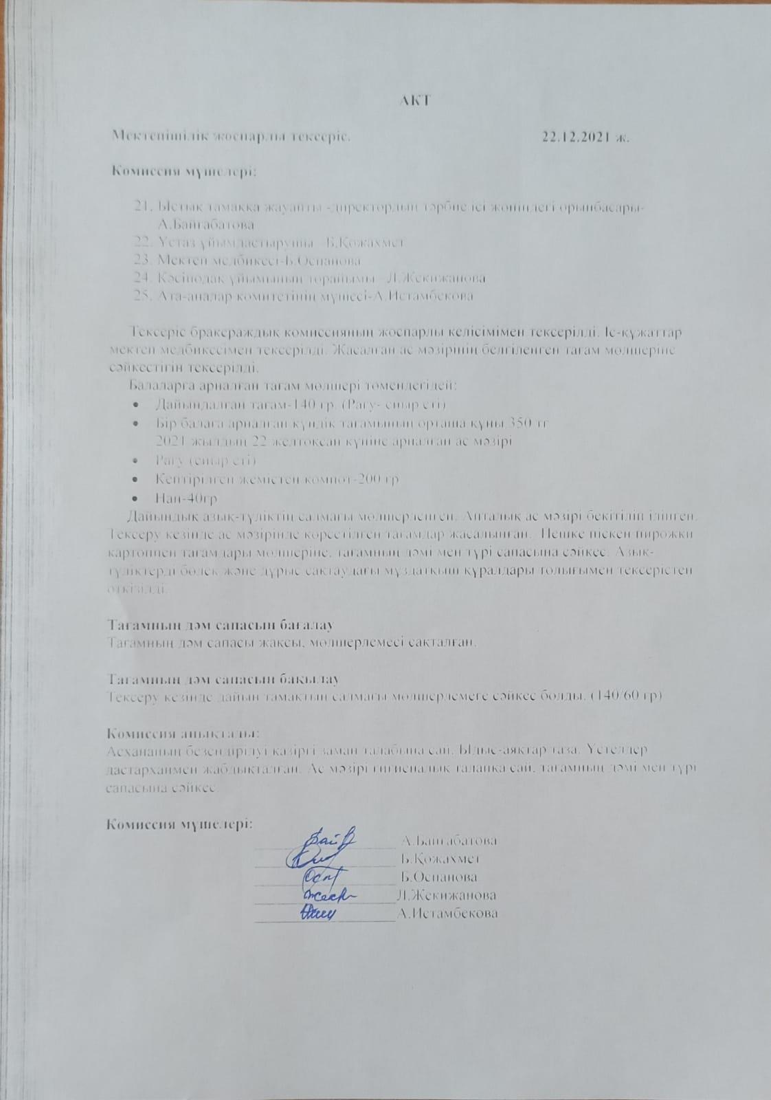 02 февраль 2022 Тамақтану