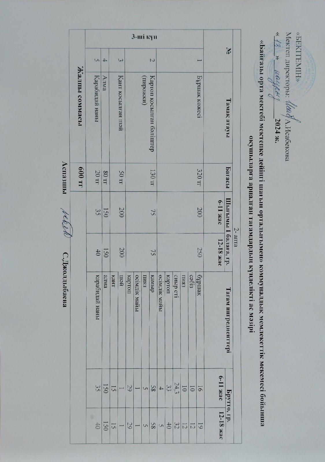 Күнделікті ас мәзірі » Жетісу облысы Кербұлақ ауданы Байғазы орта мектебі
