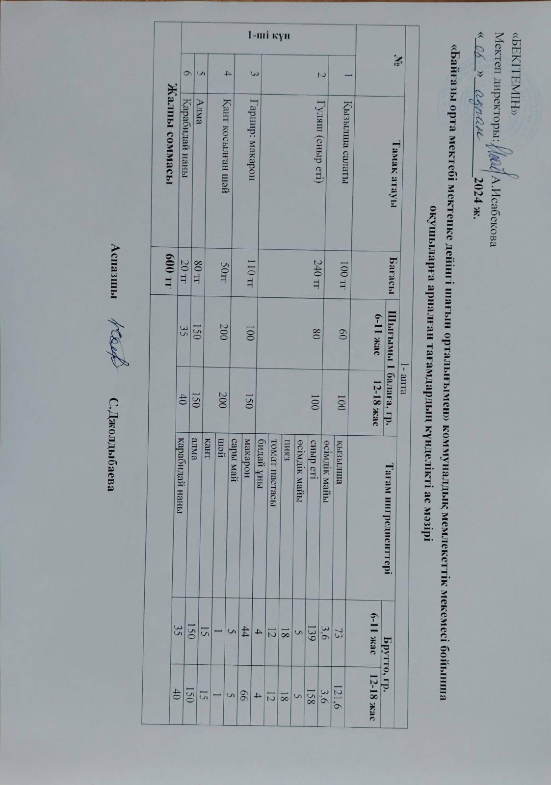 Күнделікті ас мәзірі » Жетісу облысы Кербұлақ ауданы Байғазы орта мектебі