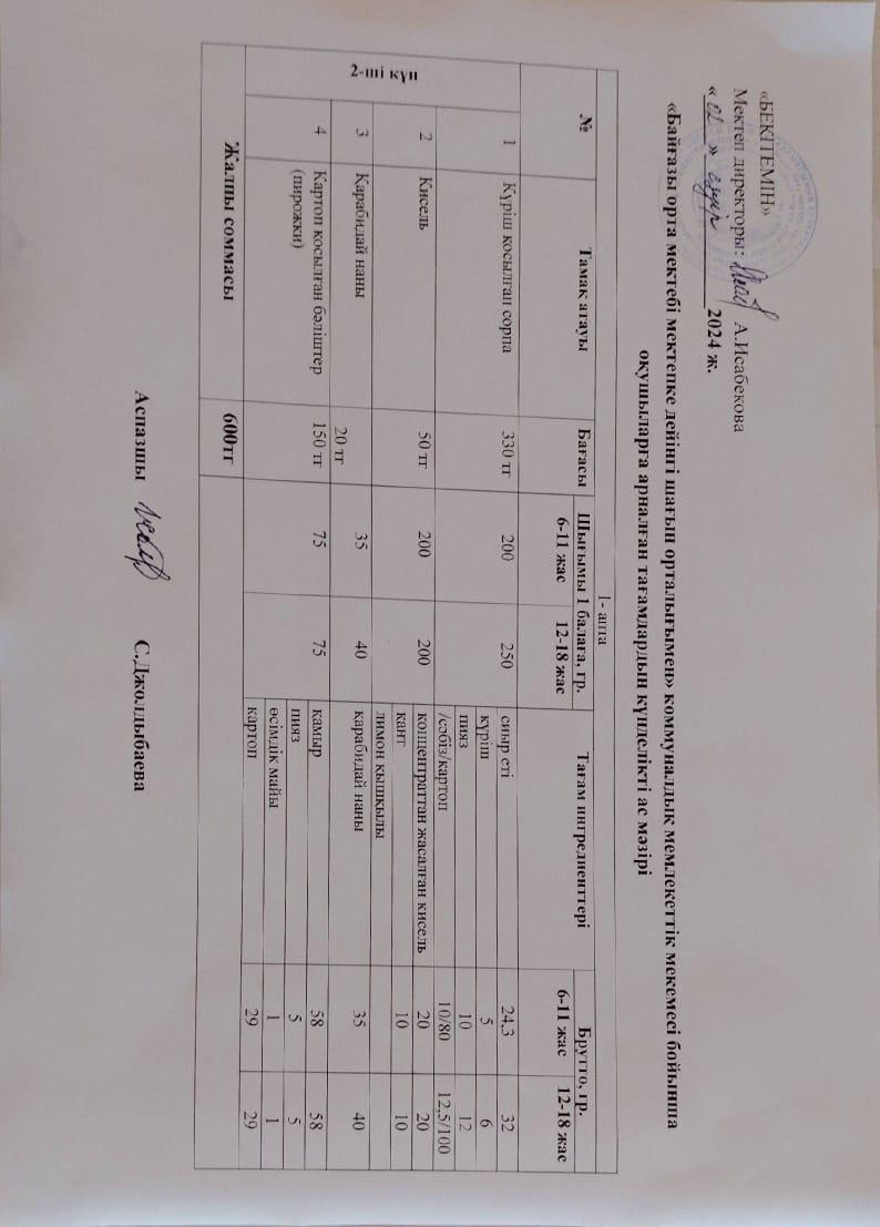 Күнделікті ас мәзірі » Жетісу облысы Кербұлақ ауданы Байғазы орта мектебі