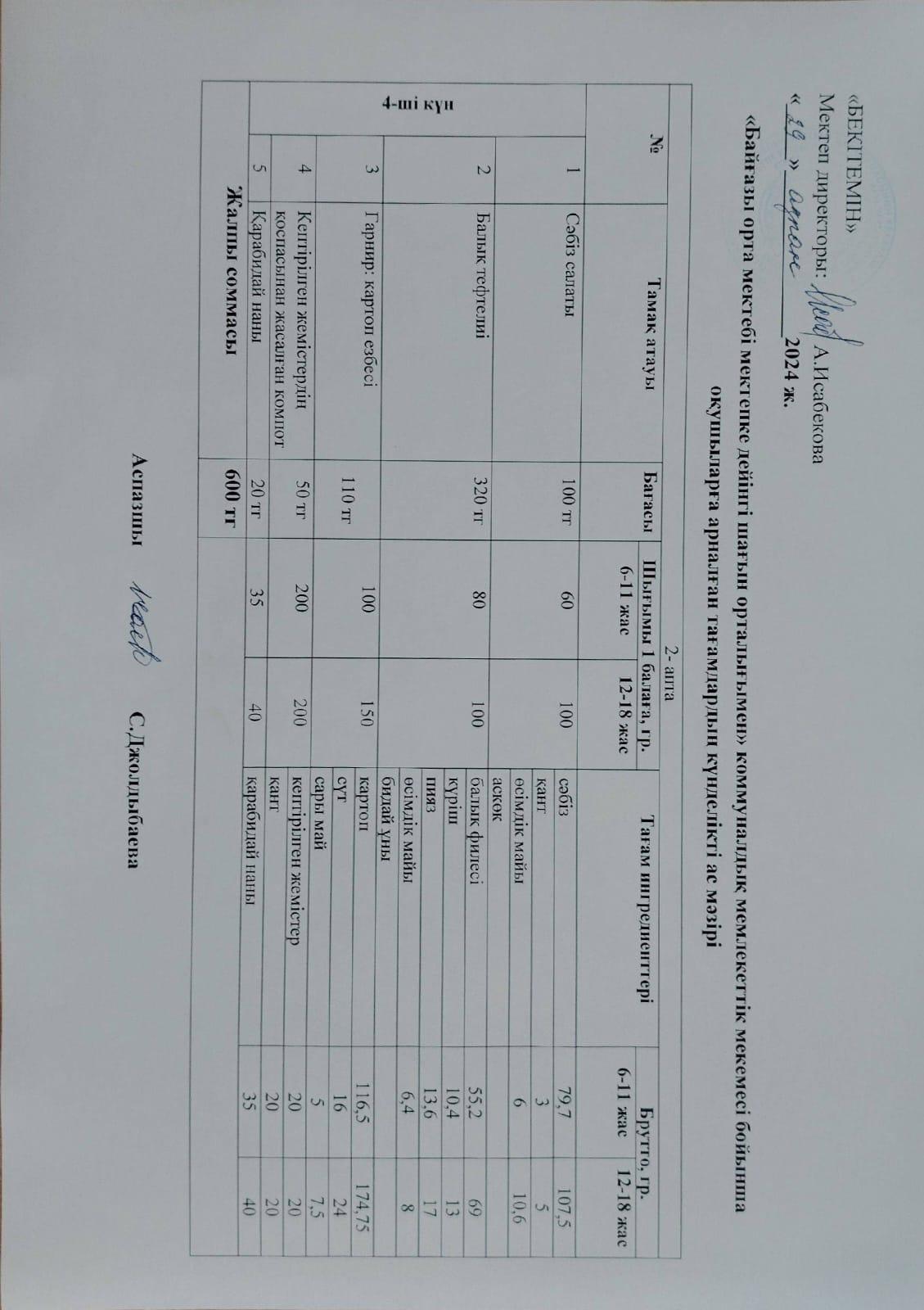 Күнделікті ас мәзірі » Жетісу облысы Кербұлақ ауданы Байғазы орта мектебі