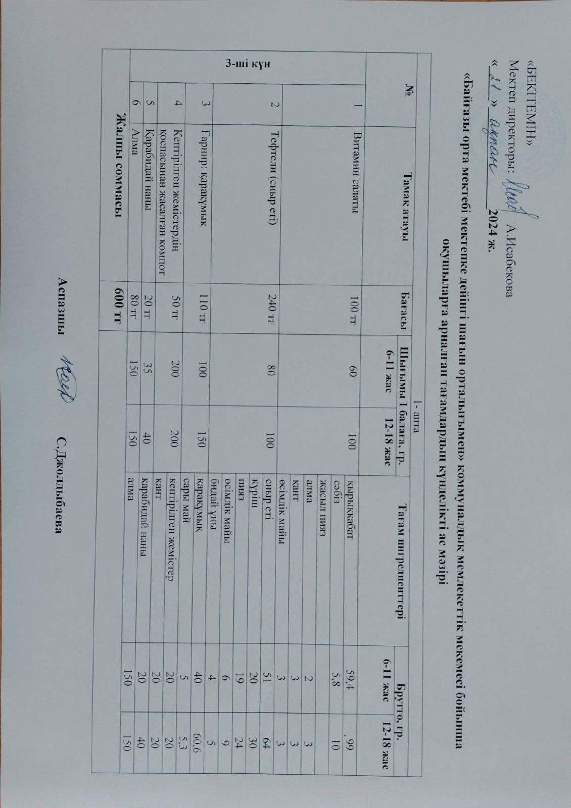 Күнделікті ас мәзірі » Жетісу облысы Кербұлақ ауданы Байғазы орта мектебі