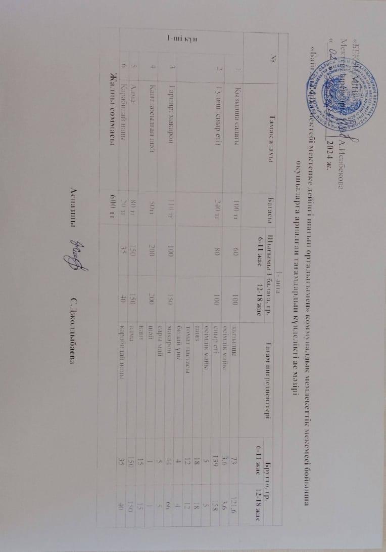 Күнделікті ас мәзірі » Жетісу облысы Кербұлақ ауданы Байғазы орта мектебі