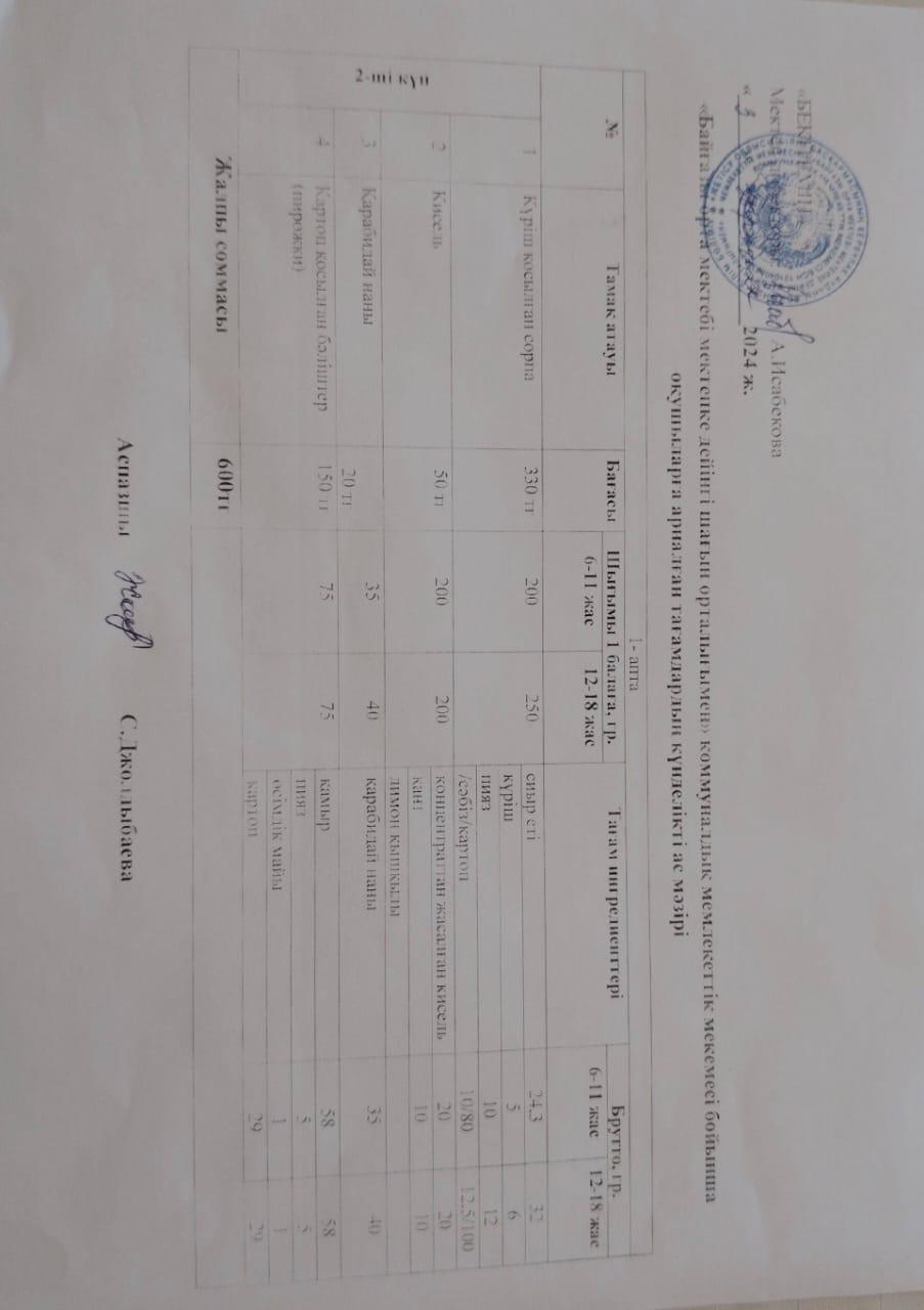 Күнделікті ас мәзірі » Жетісу облысы Кербұлақ ауданы Байғазы орта мектебі
