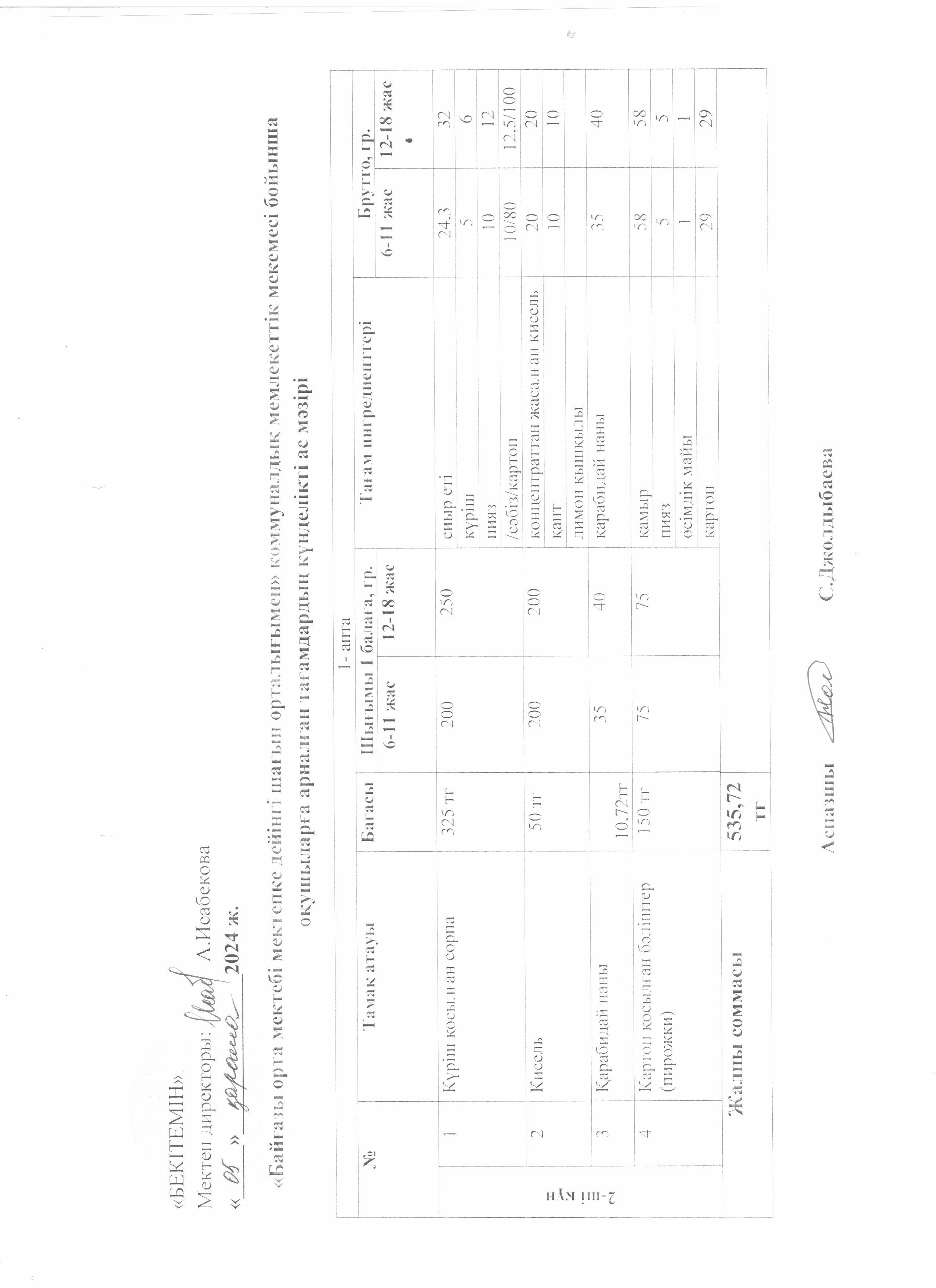 Күнделікті ас мәзірі » Жетісу облысы Кербұлақ ауданы Байғазы орта мектебі