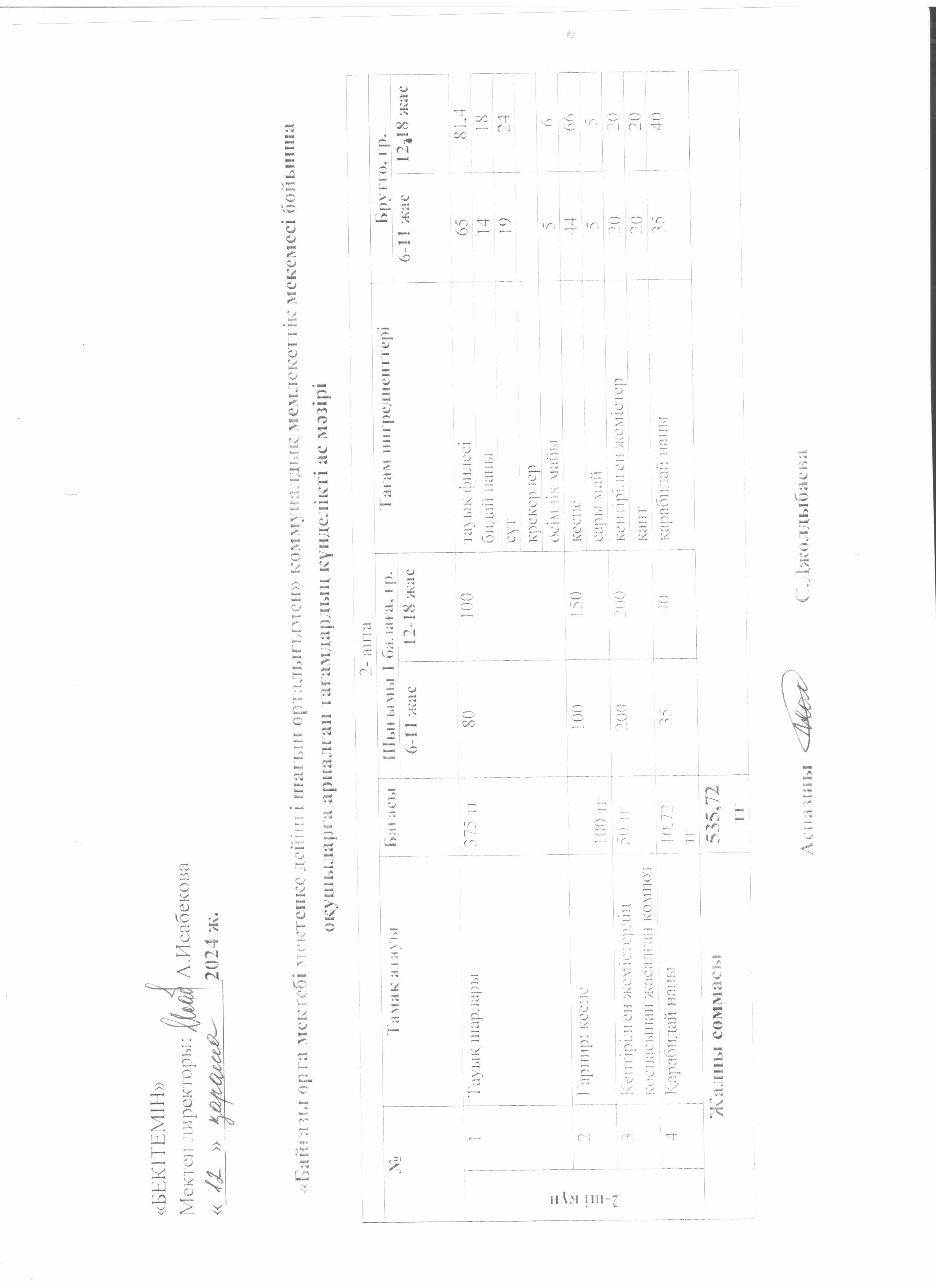 Күнделікті ас мәзірі » Жетісу облысы Кербұлақ ауданы Байғазы орта мектебі