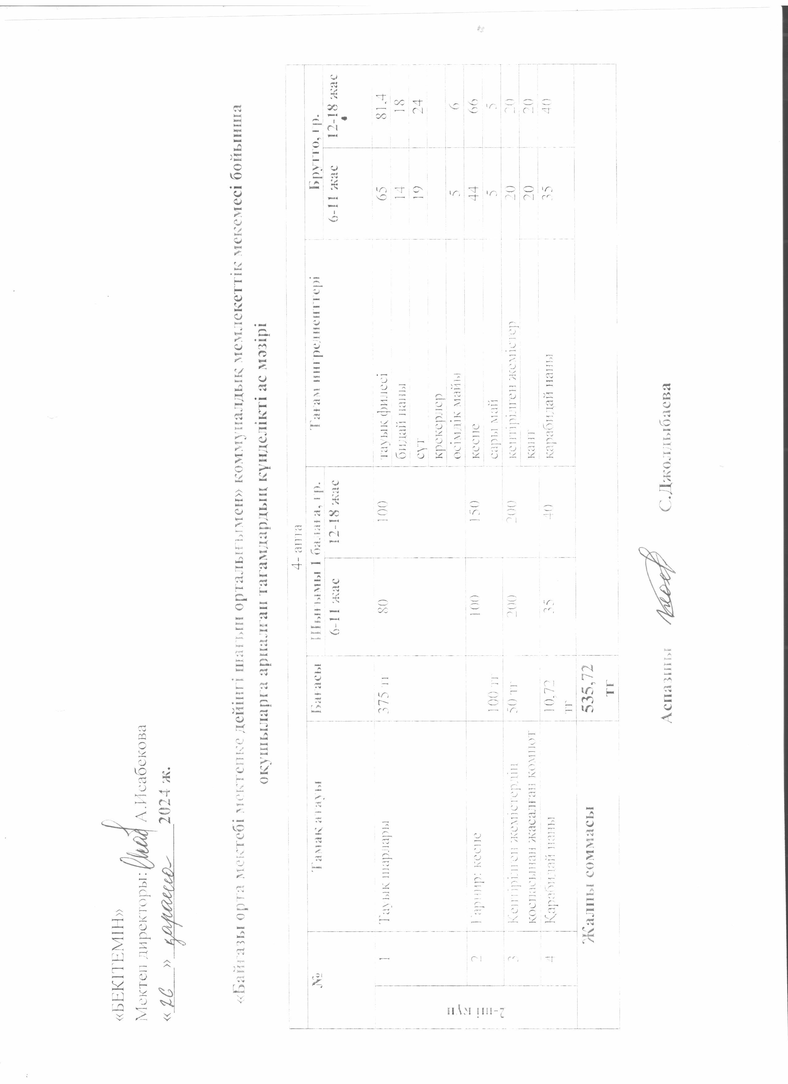 Күнделікті ас мәзірі » Жетісу облысы Кербұлақ ауданы Байғазы орта мектебі