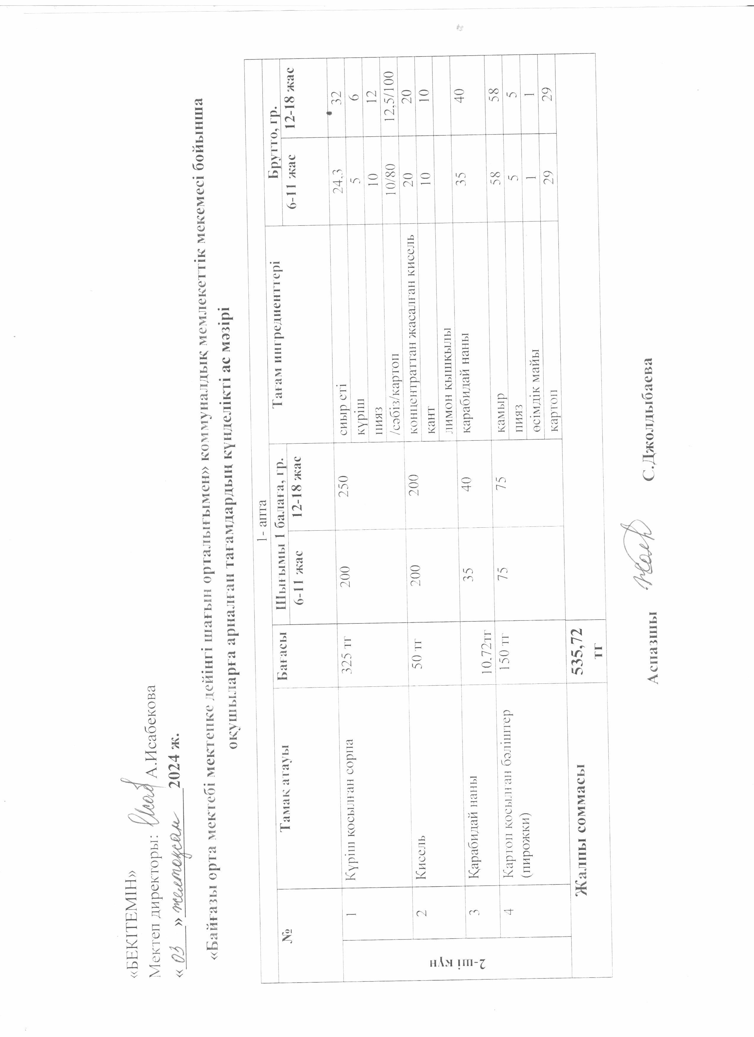 Күнделікті ас мәзірі » Жетісу облысы Кербұлақ ауданы Байғазы орта мектебі