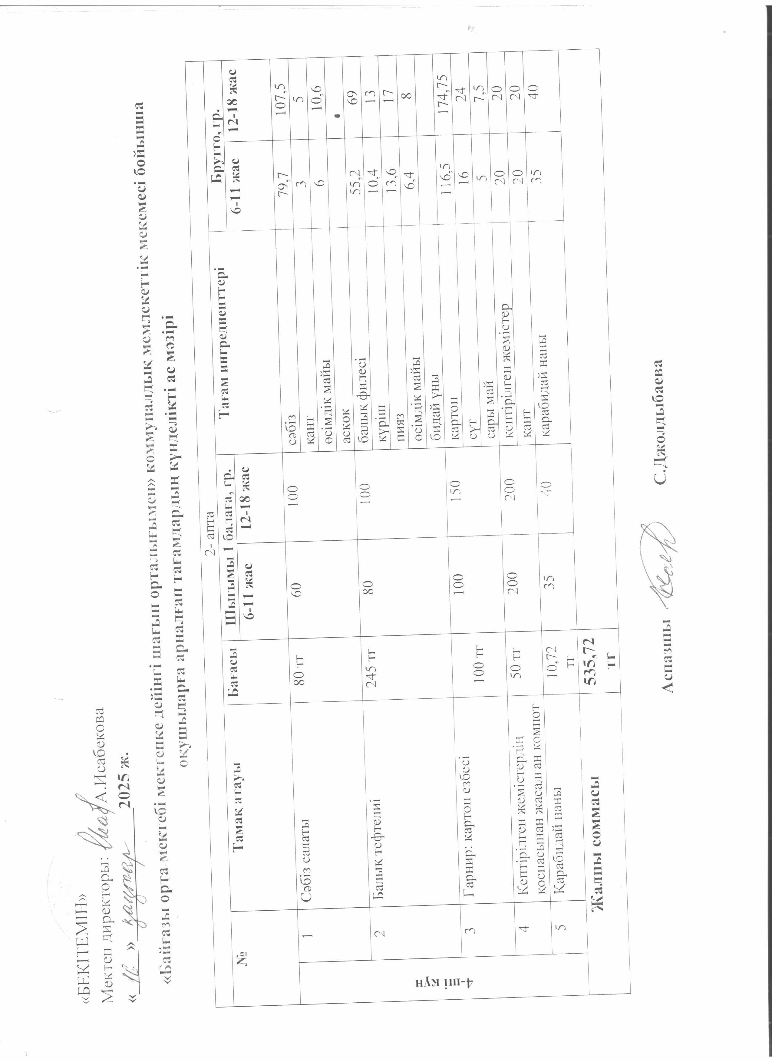 Күнделікті ас мәзірі » Жетісу облысы Кербұлақ ауданы Байғазы орта мектебі