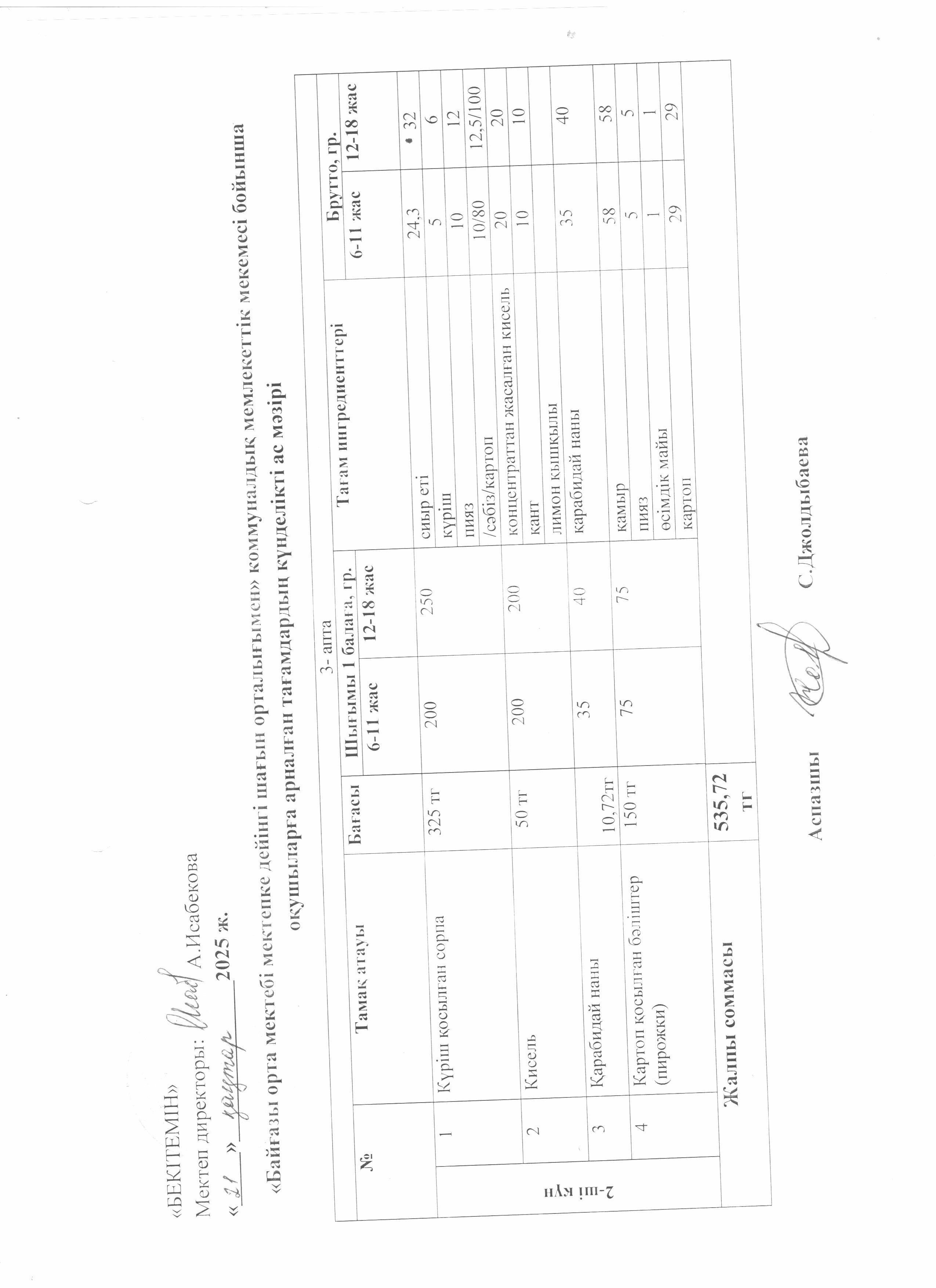 Күнделікті ас мәзірі » Жетісу облысы Кербұлақ ауданы Байғазы орта мектебі
