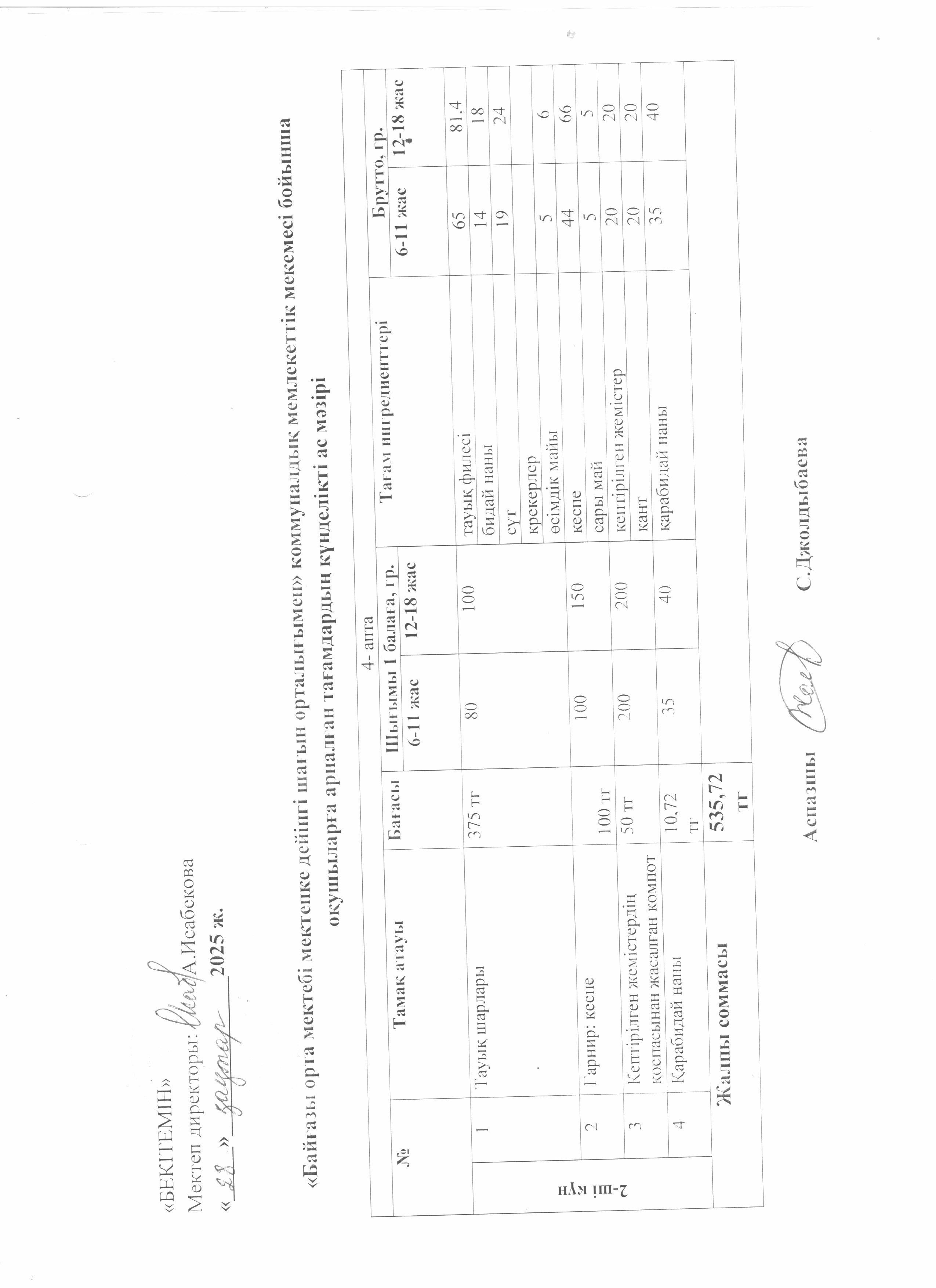 Күнделікті ас мәзірі » Жетісу облысы Кербұлақ ауданы Байғазы орта мектебі